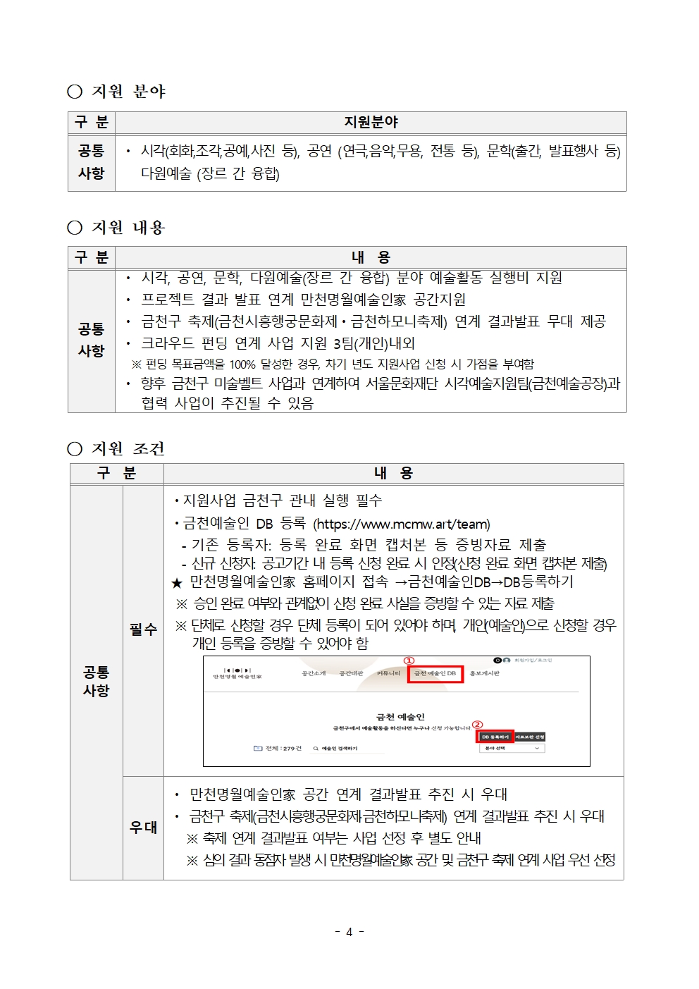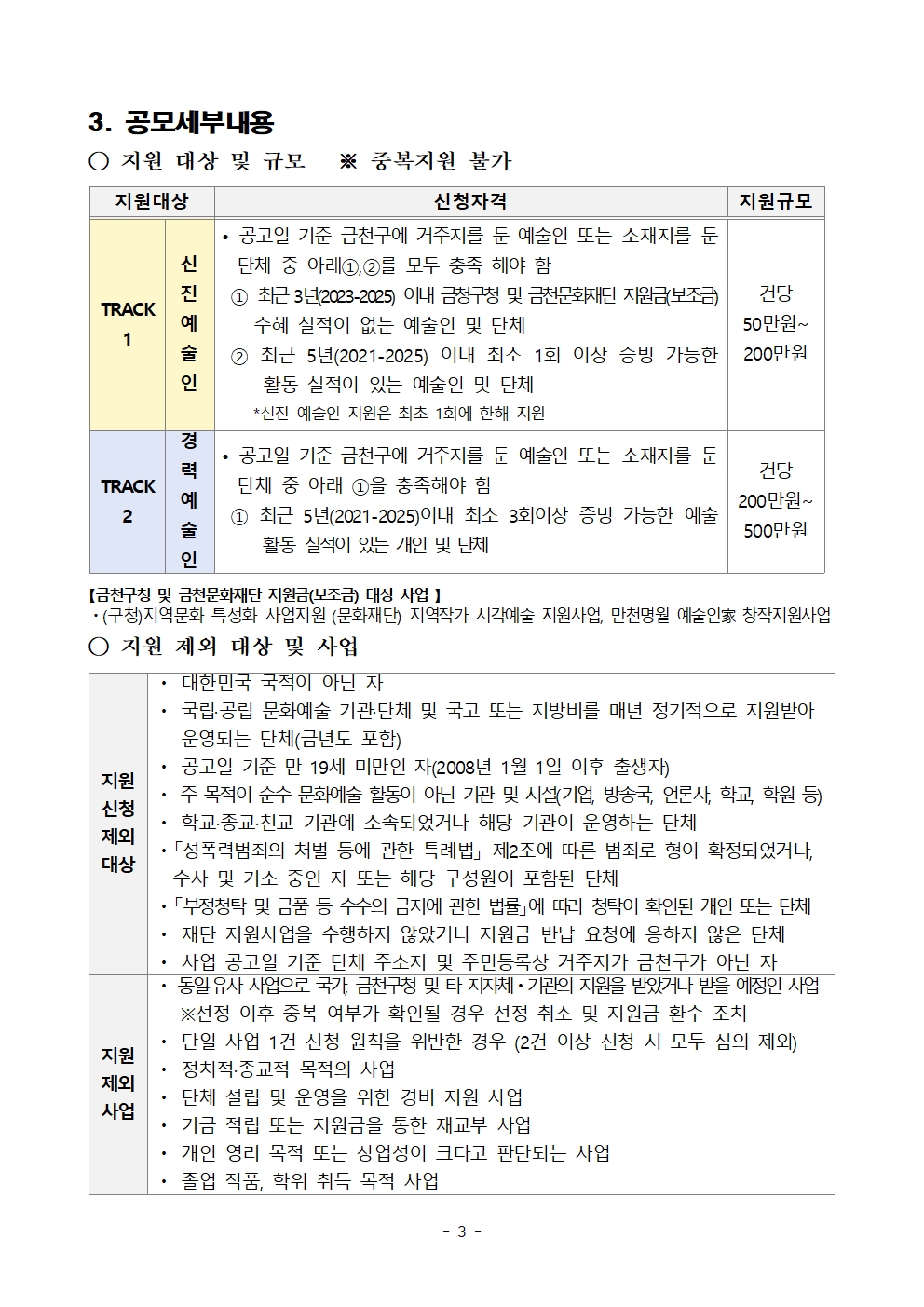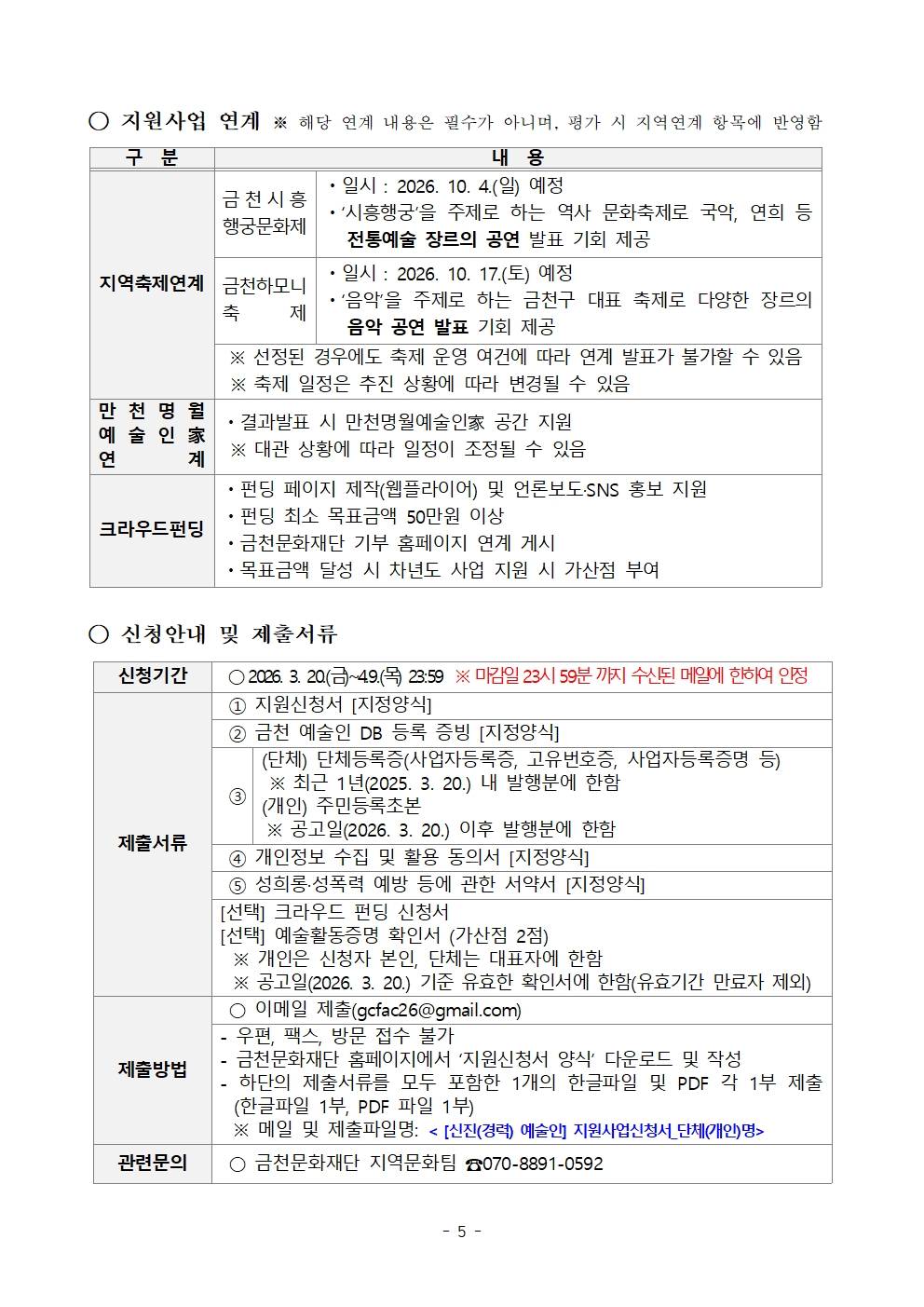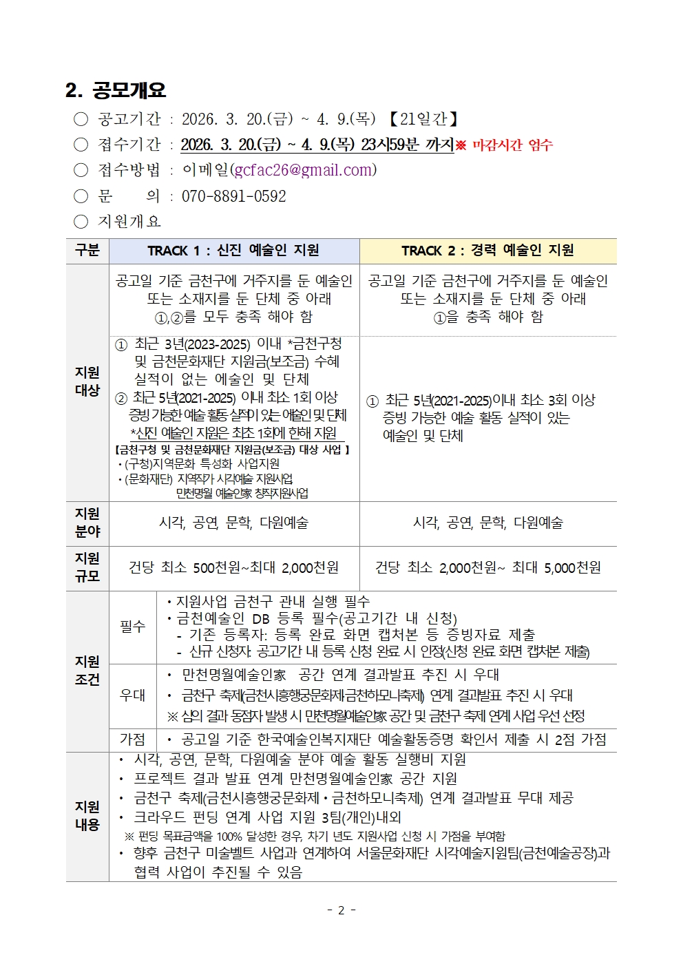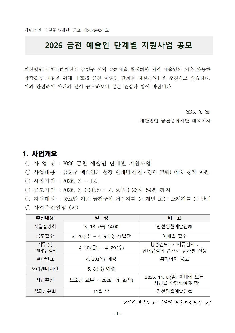 「2026 금천 예술인 단계별 지원사업」 공모 안내