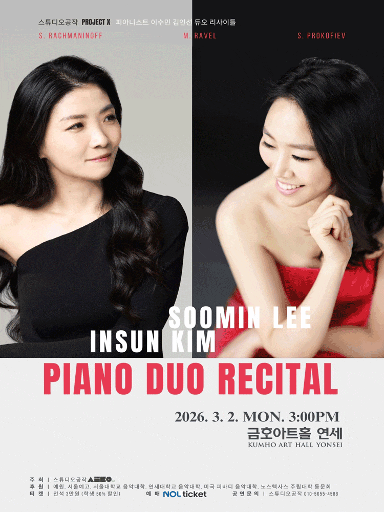 음악/콘서트 유료 서울피아니스트 이수민 김인선 듀오 리사이틀2026-03-02 -