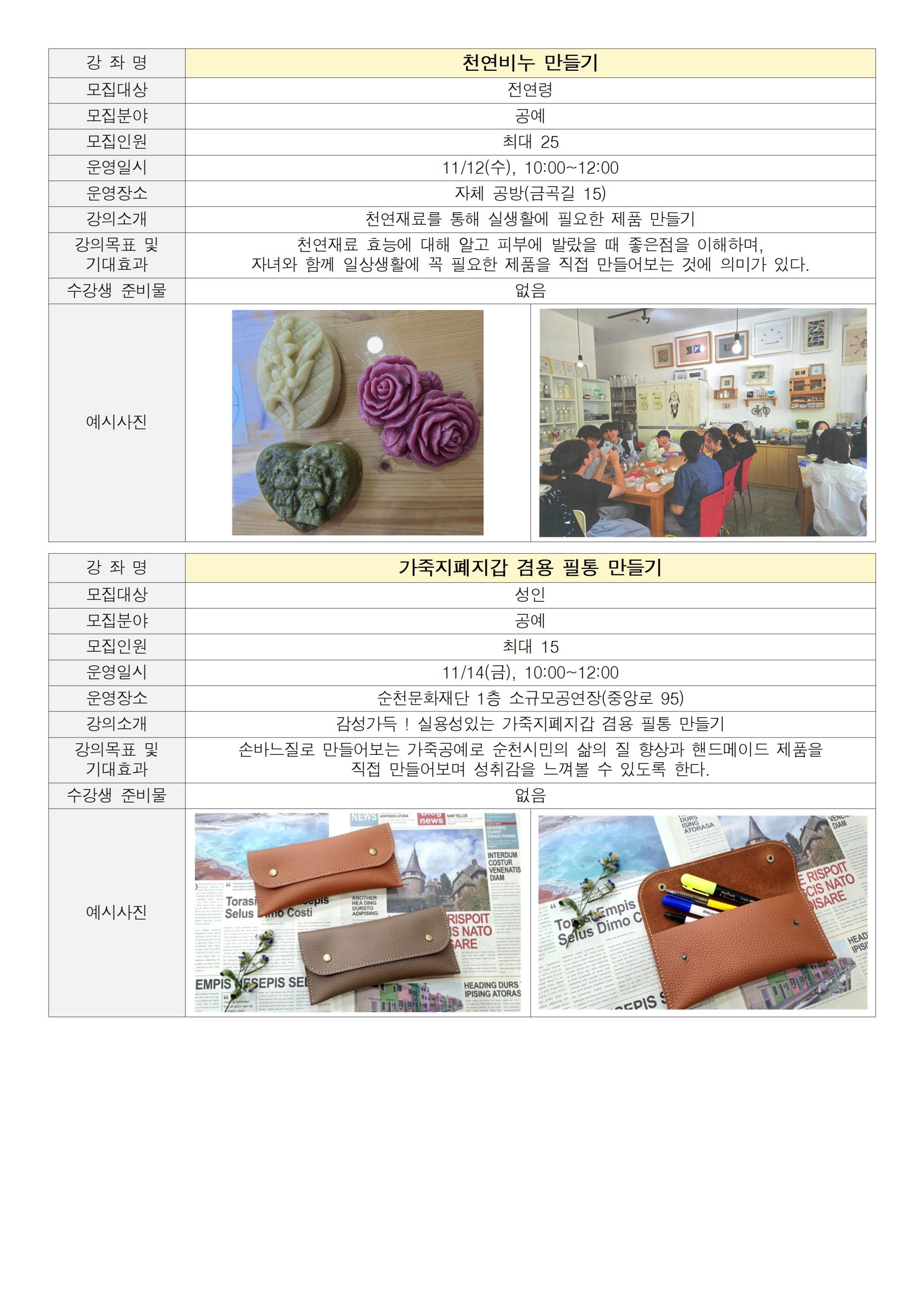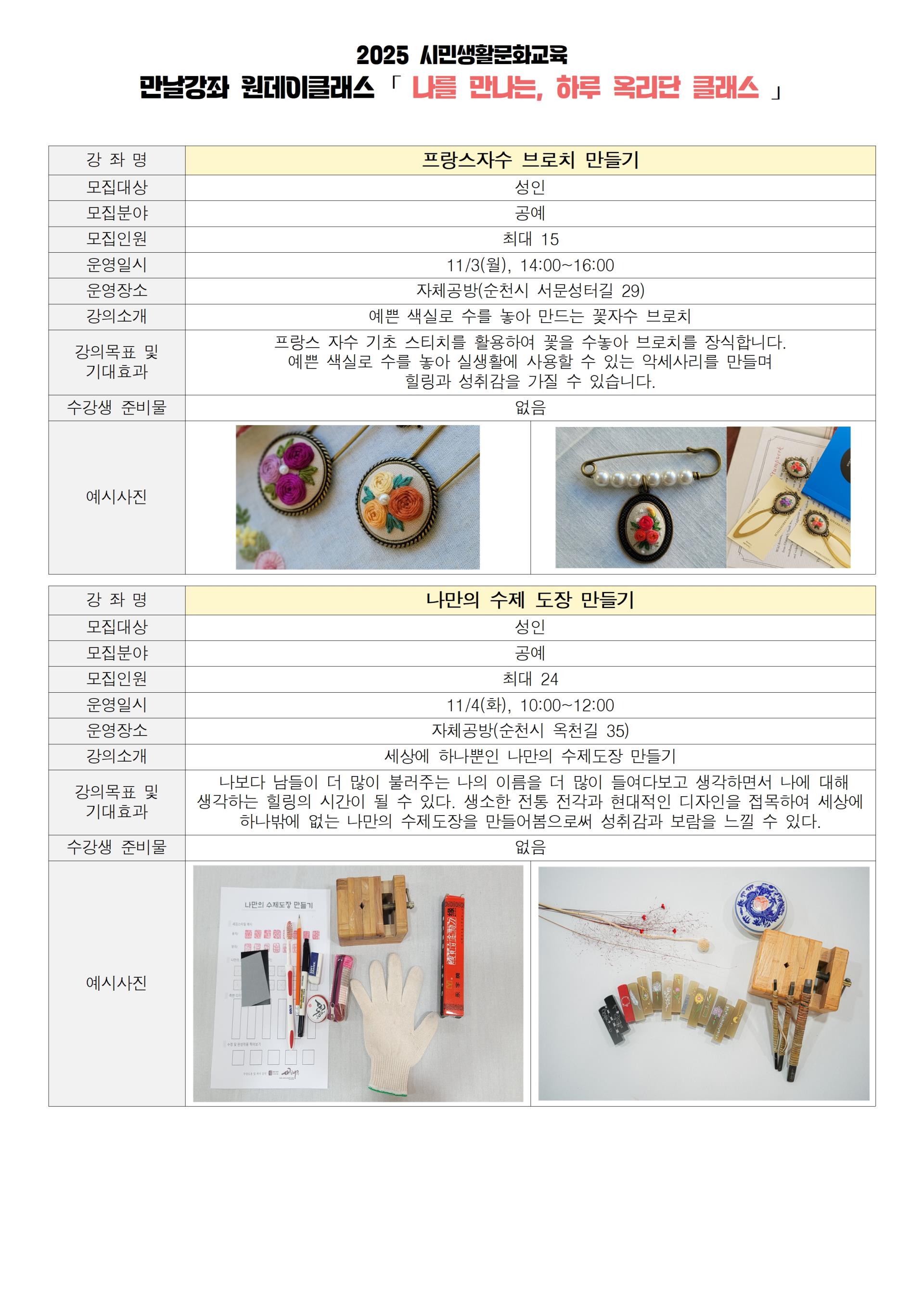 옥리단길 문화의거리 공방과 함께하는 만날강좌 원데이클래스!