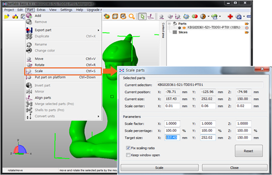 2. 상단 메뉴의 Part에서 Scale을 클릭한다.