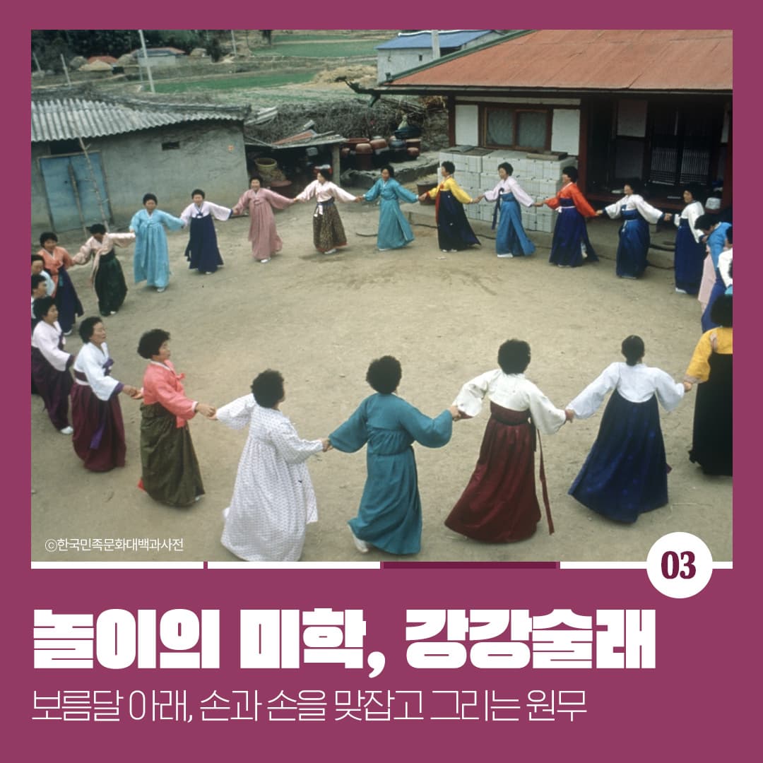 보름달 아래, 손과 손을 맞잡고 그리는 원무