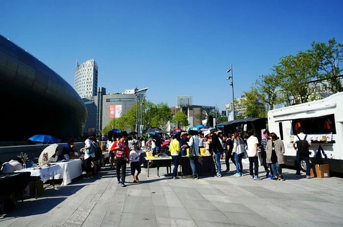 DDP에서는 1년 365일 크고 작은 전시회가 열립니다. 디자인박물관, 디자인전시관, 알림1관, 알림2관, 국제회의장, 갤러리가 있는 복합디자인 문화공간이자 시민들의 쉼터입니다. 전시회를 둘러봐도 좋고, 간단한 식사와 쇼핑을 겸할 수 있는 가족 나들이 장소로도 추천합니다. 특히 밤이 되면 건물 외관에 조명이 켜져 야경 명소로도 인기가 좋습니다.