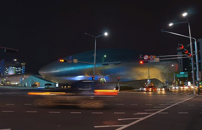DDP는 이라크 출신의 건축가, 자하 하디드의 작품입니다. ‘건축계의 노벨상’으로 불리는 프리츠커상을 여성 최초로 수상했으며, 도발적인 디자인으로 명성이 높은 건축가입니다, 단 한 장도 같은 모양이나 같은 크기가 없는 알루미늄 패널 4만 5천여 장을 이용해 초대형 건축물을 만들었습니다.