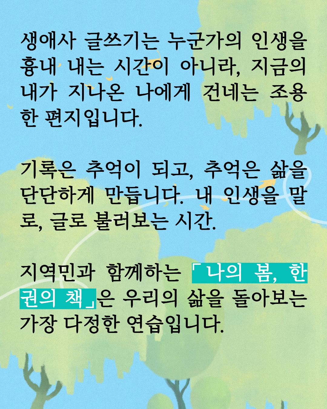 2026 지역민 생애사 글쓰기 「나의 삶, 한 권의 책」 참여자 모집 안내