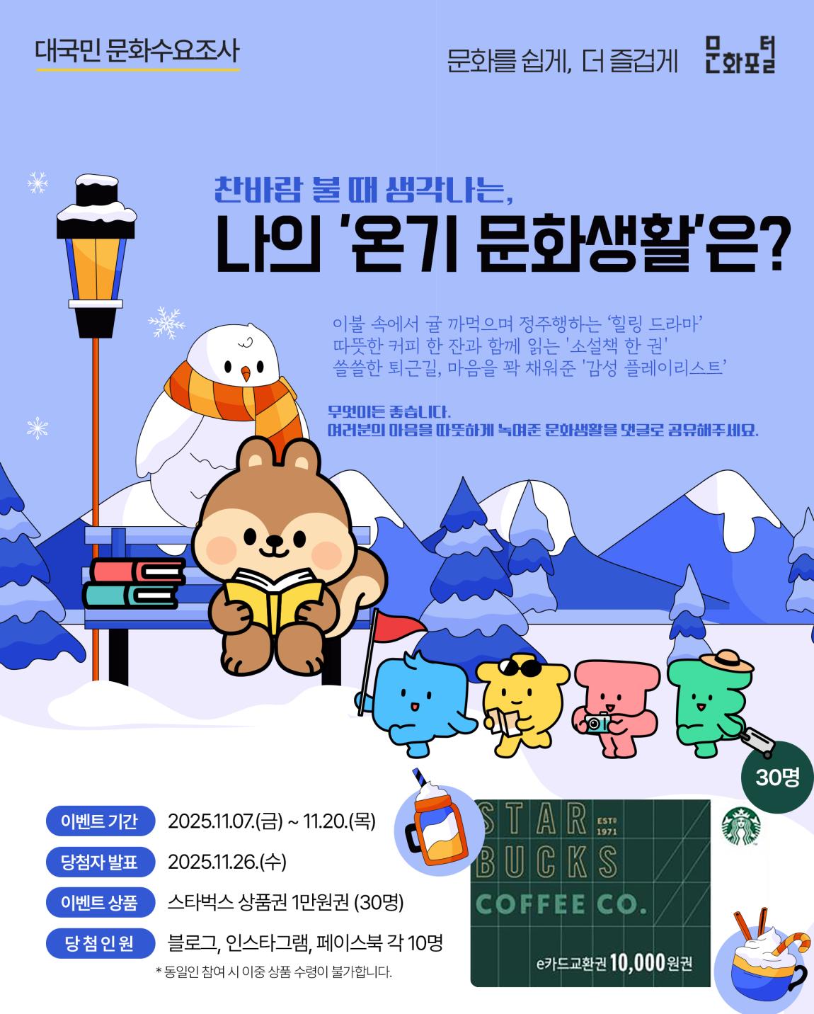 11월 대국민 문화수요조사 참여하고, 스타벅스 상품권 받자~!