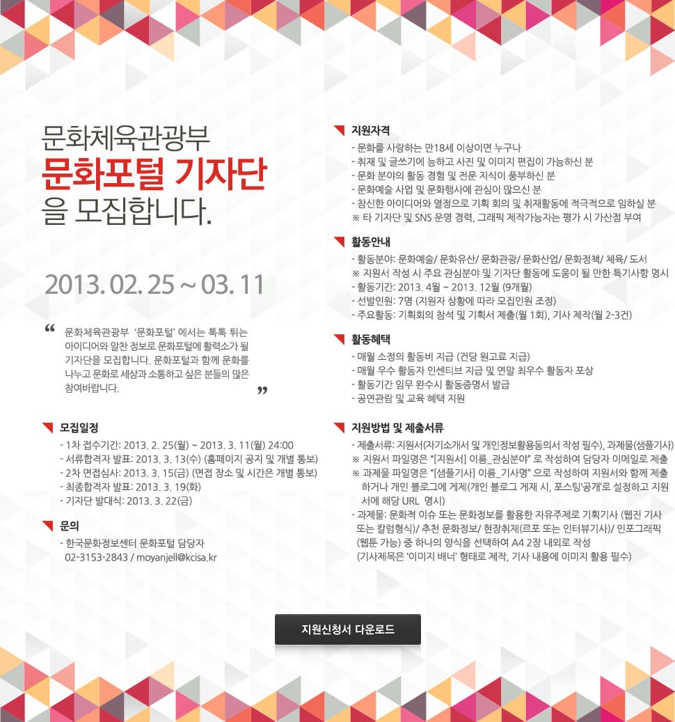 문화체육관광부 문화포털 기자단을 모집합니다.