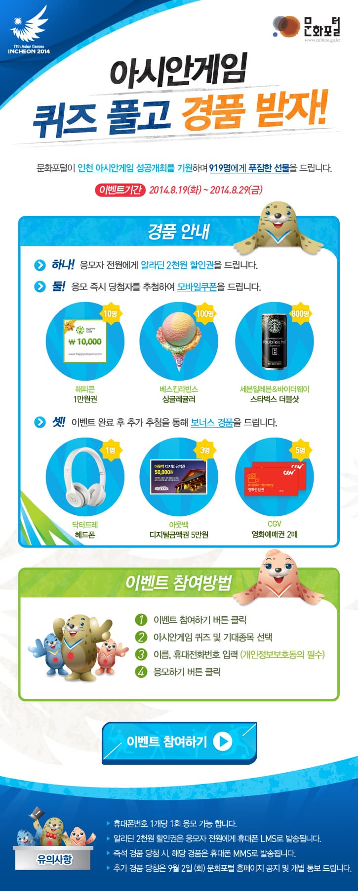 [이벤트] 2014 아시안게임 퀴즈풀고 경품 받자! (8.19-8.29)