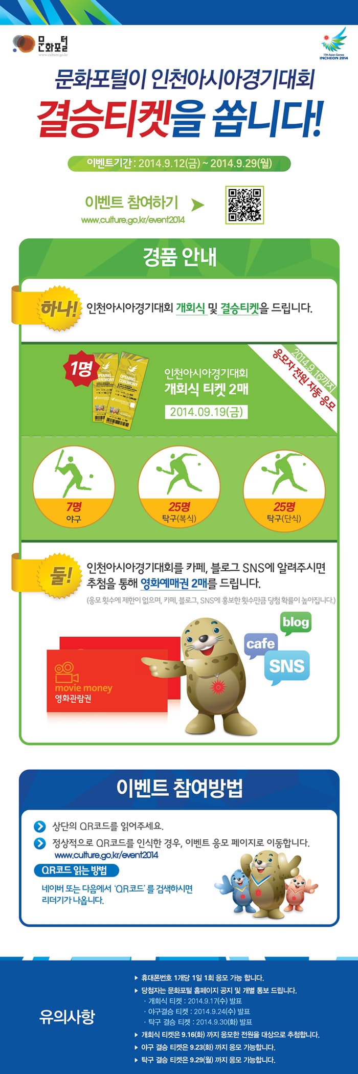 [이벤트] 문화포털이 인천아시아경기대회 결승티켓을 쏩니다! (9.12-9.29)