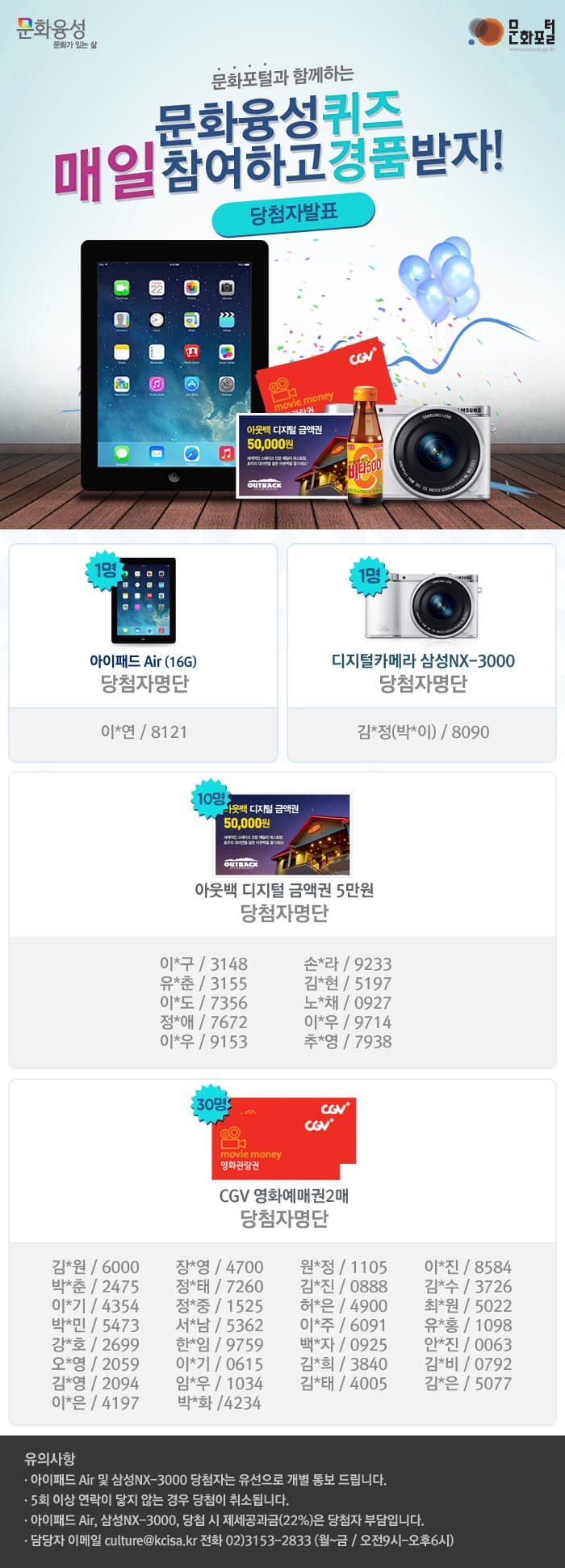 문화포털 문화융성 퀴즈이벤트 당첨자 발표