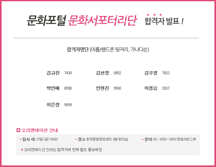 문화포털 [서포터리단] 합격자 발표