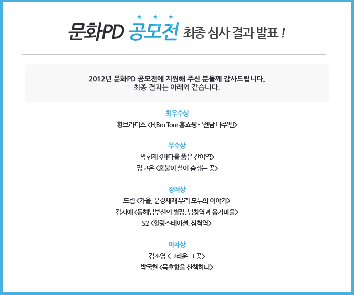 문화PD 공모전 최종 심사 결과를 발표합니다.