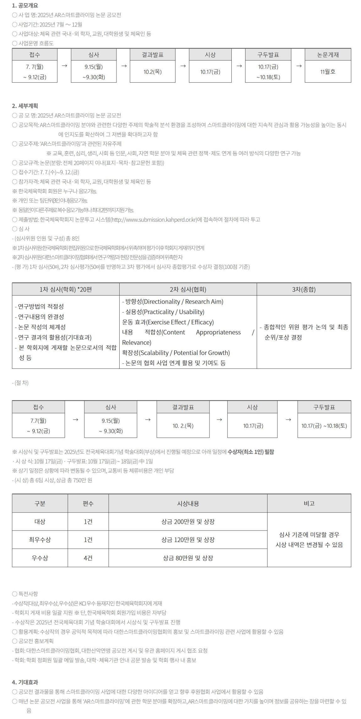 [한국체육학회] AR스마트클라이밍 논문 공모전 안내